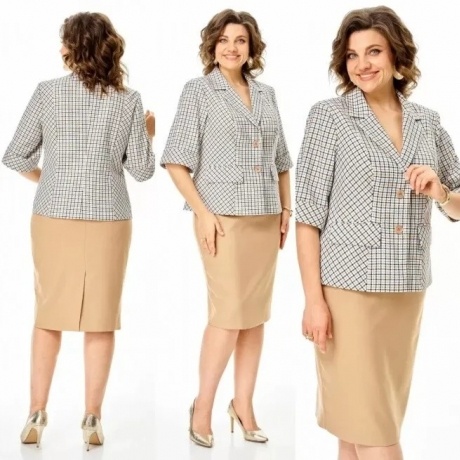 Костюм из жакета и юбки, выполнен из смесовой джинсовой ткани. Состав: хлопок 72% полиэстер 26% эластан 2% Пояс притачной с эластичной резинкой сзади, Есть замеры