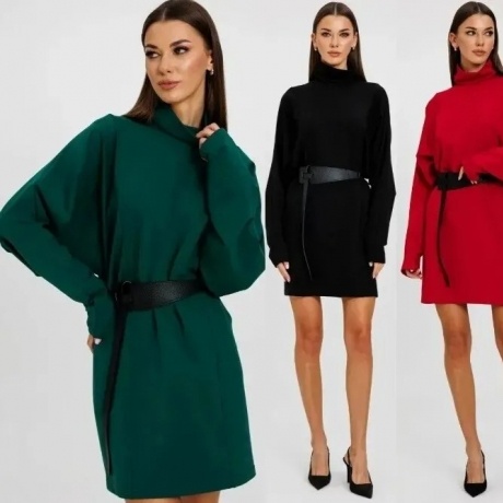 Платье из трикотажного полотна, дресс 2х нитка с напылением. Горловина круглой формы, оформлена расширенной стойкой. На рукаве отделочная нашивка. Состав хлопок 80%, полиэстер 20% Есть замеры