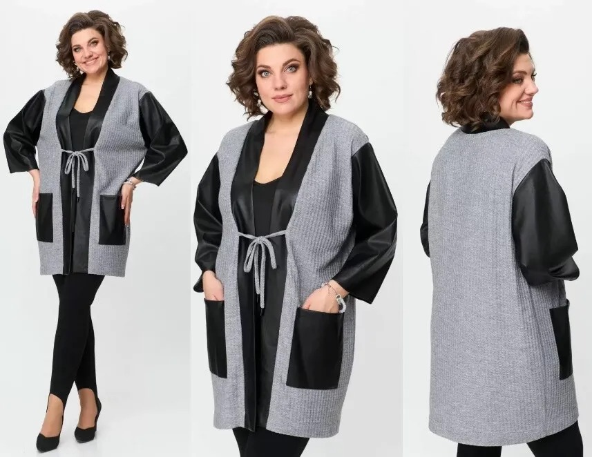 серый+черный Кардиган Состав 75% вискоза, 25% полиэстер, 5% лайкра