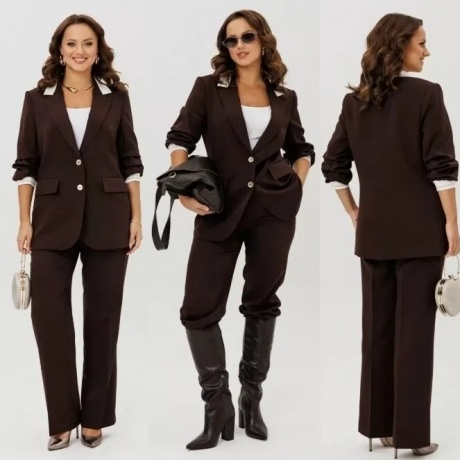 Комплект брючный состоит из кофты и брюк из трикотажного полотна Состав вискоза 60%, ПЭ 40% Пояс притачной на резинке. Есть замеры