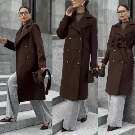 серый Пальто полуприлегающего силуэта Смещенная застежка на кнопки + с левой стороны пояс завяз. на узел. На полочках пальто объемная вышивка («тучка»). Состав 90% ПАН 10% ПЭ Есть замеры