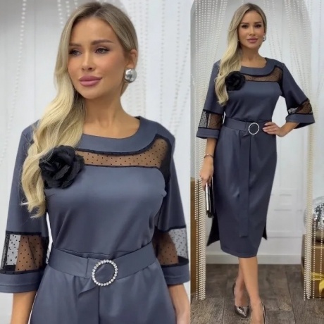 Платье полуприлегающего силуэта, из трикотажного полотна. Состав ткани: вискоза 50%, полиэстер 50%