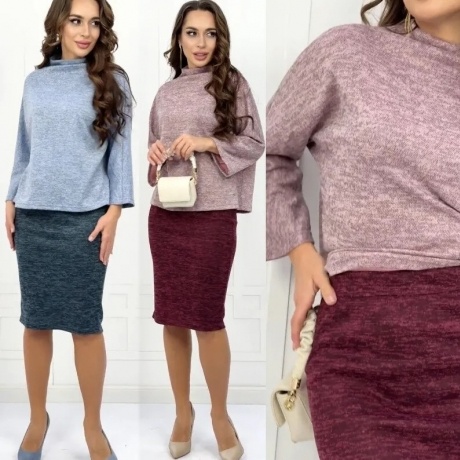Комплект Состав блузон - 83% вискоза, 15% метонить, 2% СП юбка - 100% ПЭ подкладка в юбке - 100% ПЭ Юбка на подкладке из искусств. замши