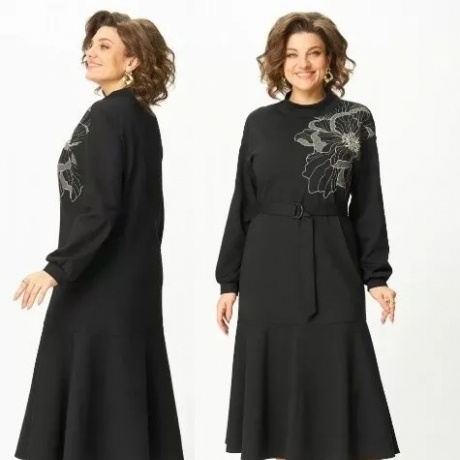 Элегантное платье из костюмной ткани Состав полиэстер-98%, спандекс-2% Длина по спинке: 117см. Длина рукава с манжетом 29см.