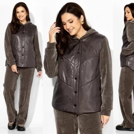 капучино Комплект джемпер и брюки из трикотажного полотна. Состав 75% хлопок, 23% ПЭ, 2% эластан Цельнокроенный пояс на резинке.