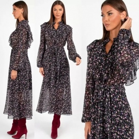 Платье полуприлегающего силуэта вверху с расширением книзу, с цельнокроеной стойкой Состав 66% вискоза, 30% нейлон, 4% спандекс