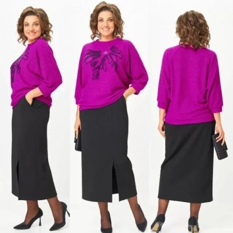 Комплект Джемпер из теплого трикотажа, с вышивкой Юбка на поясе с резинкой Состав джемпер 78% пэ, 20% нейлон, 2% спандекс; юбка 100% пэ Дл. по спинке 65 см юбки 92 см Есть замеры