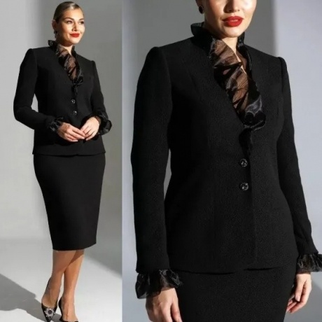 ежевика Жакет, Юбка на подкладке. Состав ПЭ 75% вискоза 23% спандекс 2% длина жакета по спинке: 63,5см рукава: 62 см юбки с поясом: 77,5 см Есть замеры