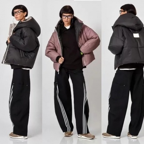 Куртка двухсторонняя: на одной стороне спинки с кожаной этикеткой с тиснением свободный силуэт сезон: зима стёганая, утеплитель изософт 300