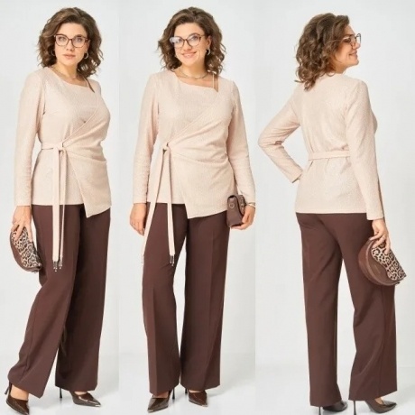 Комплект Блузка А-силуэта Брюки палаццо свободного кроя на резинке Состав 95% полиэстер, 5% спандекс Дл. блузки по спинке: 76 см рукава: 40 см брюк: 105 см