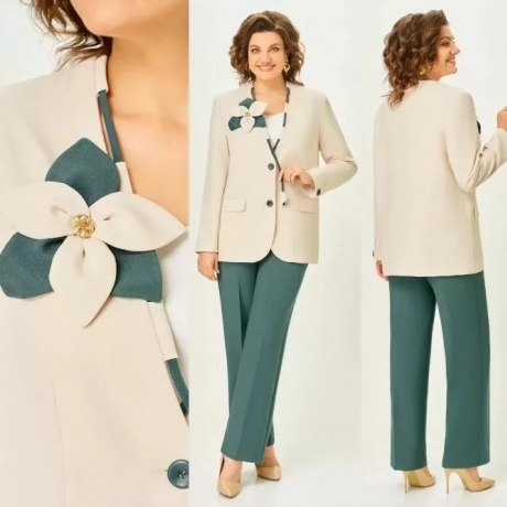 серый Костюм из жакета в клетку и брюк однотон по бокам на резинке Состав полиэстер - 55%, вискоза - 40%, спандекс - 5%. Есть замеры