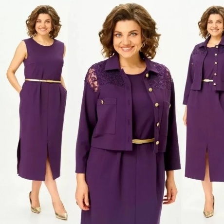 фиолет Костюм из платья и жакета. Состав 67 % вискоза, 28% полиамид, 5% спандекс Длина платья по спинке: 123 см